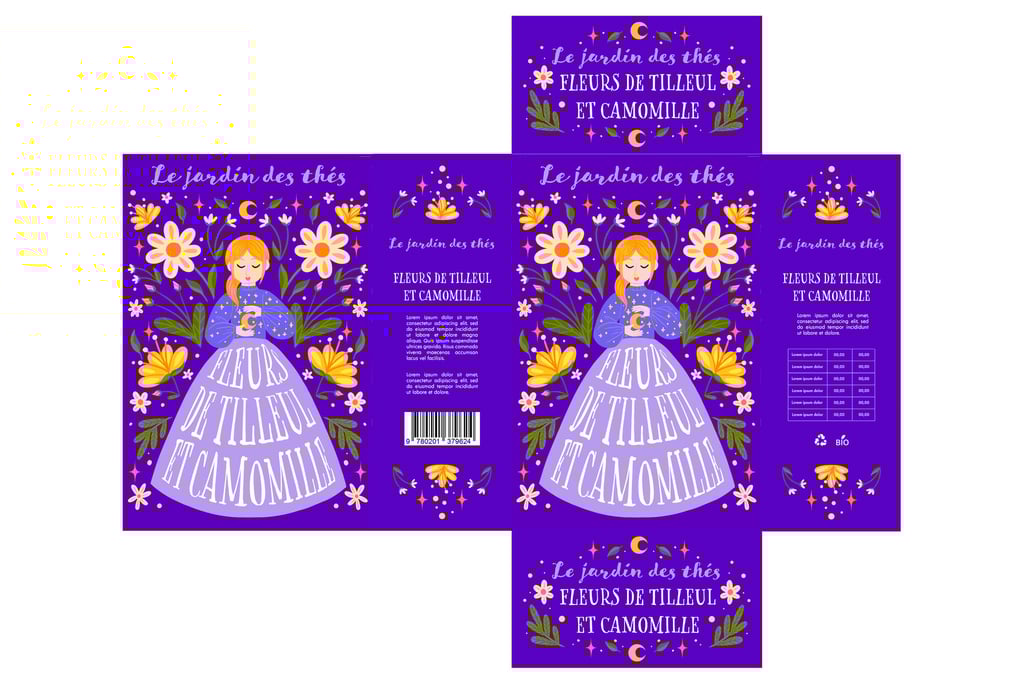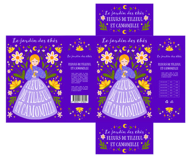 Illustration du packaging - saveurs tilleul et camomille